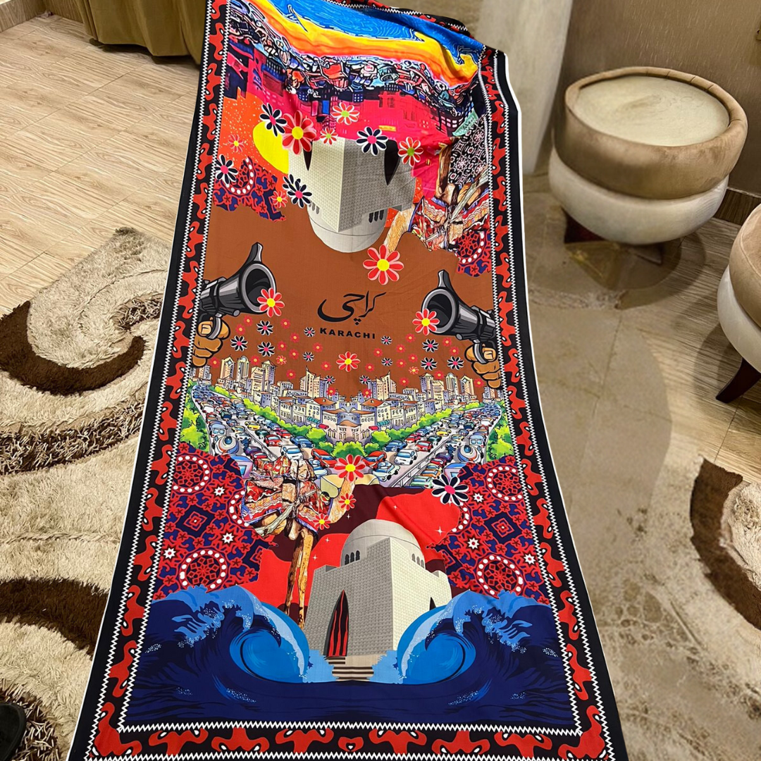 Add a touch of Karachi's cosmopolitan flair to your wardrobe with this stunning Shamoze silk dupatta. Featuring contemporary patterns and elegant craftsmanship, this dupatta effortlessly combines tradition with modernity, embodying the spirit of Karachi.