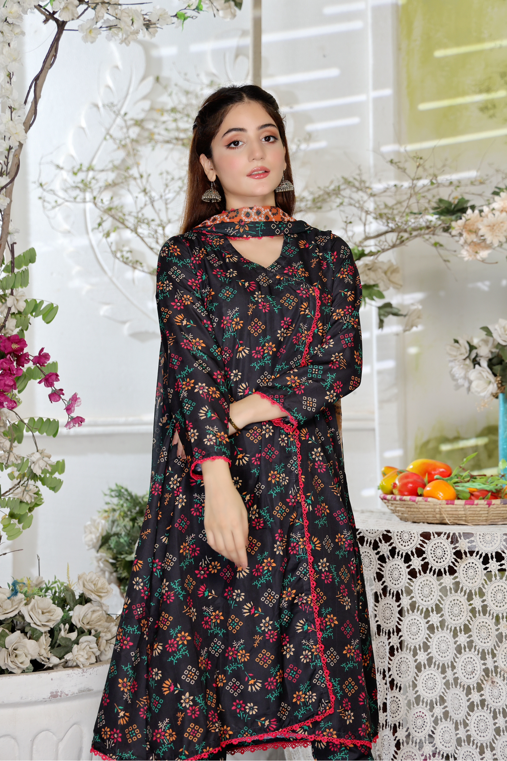 Elevate your wardrobe with this exquisite unstitched Swiss lawn dress set, crafted from premium quality fabric. Each set includes three pieces: a beautifully printed Swiss lawn shirt and trouser fabric, and a soft chiffon dupatta adorned with delicate prints.